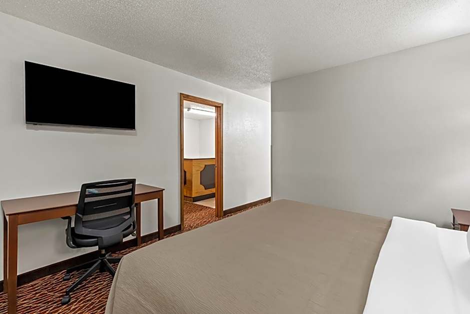 This nonsmoking room features a small refrigerator, tea/coffee maker and flat-screen TV with cable channels.